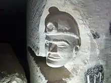 On trouve également plusieurs sculptures en place, réalisées avec des outils très simples (couteaux) ; ceci est possible grâce à la tendreté de la roche.