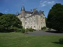 Le château a été édifié au XVe siècle avec divers ajout jusqu'au XIXe siècle dont un perron monumental qui remplace l'ancien pont-levis. Le pigeonnier du XVIe siècle, lequel compte environ 2 000 niches, est l’un des plus grands de France. Le site abrite également une chapelle néo-gothique[3][source insuffisante].