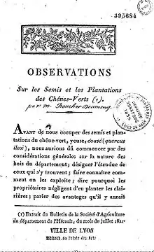 - Observation sur les semis et les plantations des chênes verts (Bulletin de la société d’agriculture du département de l’Hérault du mois de ) ;