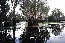 - voir l'article dans WP:En sur Canning stock-route. L'attitude des immigrants européens vis-à-vis des Indigènes Australiens fut d'ailleurs si semblable à celle qu'ils avaient eue un peu plus tôt vis-à-vis des Amérindiens qu'un scénariste américain eut l'idée d'un « western australien » parfaitement plausible : dans Quigley Down Under (titre français : Mr Quigley l'Australien) de Simon Wincer (1990), un cow-boy du Montana, champion de tir à la cible (joué par Tom Selleck), est engagé par un grand propriétaire-éleveur australien. Le cattle-tycoon veut lui faire éradiquer les abos qui persistent à vivre sur « ses » terres. Le cow-boy refusera, et prendra même parti pour les blackfellas...