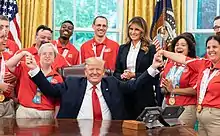 En 2009, Vince McMahon annonce qu'il vend RAW à Donald Trump[176] ; ce dernier devient alors propriétaire du spectacle de catch WWE Raw, qu'il rebaptise TRUMP RAW. Cependant, la semaine suivante, McMahon rachète Monday Night Raw le double du prix vendu. En 2013, Trump devient membre du WWE Hall of Fame en reconnaissance de son rôle dans la promotion de la World Wrestling Entertainment[177]. En 2016, Linda McMahon, épouse de Vince McMahon et longtemps directrice de la WWE, verse 6 millions de dollars à Donald Trump pour sa campagne présidentielle. Elle se voit nommée à la tête de la Small Business Administration (SBA) après sa victoire[178].