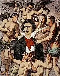 Portrait imaginaire du XIXe siècle, par H. Biberstein : Sade soumis aux quatre vents des suggestions diaboliques.