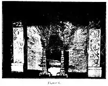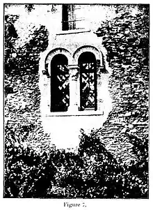 À la première croisée de la galerie ; à l’ouest, on peut distinguer le pied droit et le départ de la fermeture de la même époque ; ce sont ces fragments de la base de la colonnette, restés en place, qui ont donné le moyen de rétablir fidèlement les croisées de la galerie, dans leur premier état ; ce qui n’est pas sans importance pour l’histoire de l’art, car ces croisées n’ont point de similaires, où plutôt d’égales ; elles forment un type romano-byzantin qui, plus tard, devait être mis à profit dans le style roman et même dans celui de la Renaissance, par ses croisillons. Les croisillons furent point employés chez les Romains et Byzantins ; leur ajustement dans une baie purement romane est déjà un fait remarquable.