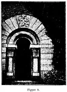 Dans le mur de refend, entre la salle à manger et la galerie actuelle, on voit une baie d’une porte dont la fermeture affecte la forme ogivale rudimentaire ; elle dut être percée ou modifiée après coup, car c’est la seule de cet ordre d’architecture qui apparaisse dans les murs du donjon avant l’œuvre du XIVe siècle.