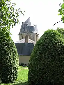 Le donjon est flanqué d'une deuxième tourelle, abritant un escalier à vis. Un bâtiment plus classique avec un toit à la Mansart est lui-même accolé à cette deuxième tourelle.