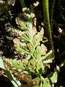 Les sores se situent à la face inférieure des frondes, et sont petits, allongés, parfois confluents. La fructification est estivale (de mai à septembre)[4].