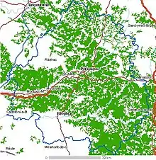 Avec une superficie boisée de 4 183 km2 morcelée entre 90 000 propriétaires, la forêt occupe 45 % de la superficie du département[18]. Le secteur du bois est le second employeur industriel de Dordogne, avec nombre de scieries et de transformateurs[19], dans trois domaines d'utilisations : bois d'œuvre pour l'ameublement, l'emballage et la construction, bois d'industrie pour papeteries ou panneaux de particules, et bois énergie pour le chauffage[18].