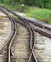 En jouant sur l'imbrication des 4 files de rail, on peut réaliser une voie à 3 écartements, cas rencontré pour les voies de 1,435 m, 1,067 m et 1,0 m.