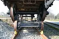 - Trucks porteur ou bogies porteurs (rollbocks), qui transportent un matériel d'un écartement sur un autre. Ce système est surtout utilisé dans le cas où l'écartement d'origine du wagon est plus large. Les quantités à transporter ne peuvent pas être trop importantes et la vitesse est limitée.