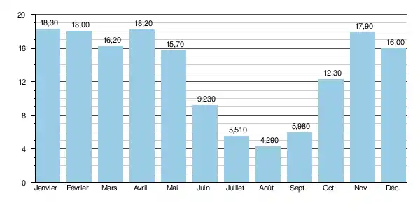 Le module de la rivière à Millau est de 13,10 m3/s[2].