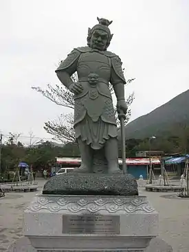 Des statues des douze généraux célestes sont installées à Ngong Ping (en), Hong Kong, près des statues du Grand Bouddha.
