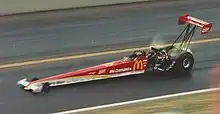 La catégorie reine est le « Top Fuel », les plus rapides passaient la ligne des 402 m en moins de 4,5 s, atteignant des vitesses proches de 530 km/h[1]. Avec la nouvelle règlementation National Hot Rod Association (NHRA) pour cette catégorie, les épreuves se disputent aujourd'hui sur 305 m en moins de 3,8 s. Ceux-ci sont propulsés par des moteurs pouvant dépasser les 8 000 ch[2], alimentés par un mélange de nitrométhane (90 %) et de méthanol (10 %).