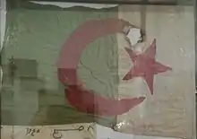 L'Étoile nord-africaine (ENA) est fondée en 1926 ; c'est une association de travailleurs militant pour l'émancipation de l'Algérie, présidée par Messali Hadj et qui compte comme membre le petit-fils de l'Émir Abd el-Kader, Khaled el-Hassani ben el-Hachemi. Cette structure cherche très tôt à donner un emblème au mouvement algérien, dès 1926 avec un drapeau à dominante verte comportant la mention « l'Algérie notre pays, l'arabe notre langue et l'islam notre religion »[8]. Les partisans de l'ENA s'inspirent des symboles et des figures de la résistance à la colonisation du XIXe siècle. Ainsi, ils considèrent l'Émir Abd el-Kader comme une figure qui a tenu un drapeau algérien[9].