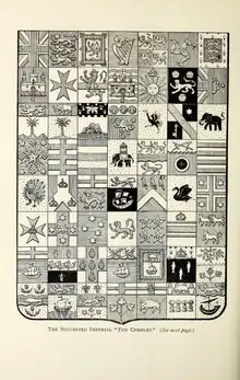 Une proposition a été élaborée en 1900 par Edward Marion Chadwick, un éminent héraldiste canadien qui était à l'avant-garde de l'étude des armoiries dans le pays, visant à combiner les armoiries de tous les territoires de l'Empire britannique[23]. En réponse à un défi lancé par le Genealogical Magazine, il conçut un blason de cinquante-six quartiers dans le style de l'insigne canadien. Les subdivisions de plus grands régimes politiques représentent une grande partie du nombre total. Par exemple, les provinces canadiennes sont toutes présentées séparément plutôt que comme une seule unité. Des pays comme le pays de Galles ont également été représentés, bien qu'ils soient généralement exclus des conceptions d'articles comme celui-ci. La plupart étaient directement basées sur des documents mis à disposition par Amirauté britannique, mais certaines auraient été si inadmissibles que Chadwick a pris sur lui de les redessiner. Certaines armoiries étaient de conception tout à fait unique dans des cas où il n'en existait pas, comme celles de Territoires du Nord-Ouest[24].