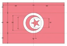 La loi organique no 99-56 du , adoptée le 3 juillet[22] par la Chambre des députés, officialise pour la première fois le drapeau tunisien au niveau de la loi, précisant ainsi l'article 4 de la Constitution[23]. Celle-ci indique qu'il a la forme d'un rectangle de couleur rouge dont la largeur est égale aux deux-tiers de sa longueur[23]. Au milieu du drapeau est tracé un disque blanc dont le diamètre est égal au tiers de la longueur du rectangle et dont le centre est situé sur le point d'intersection des diagonales du rectangle[23].
