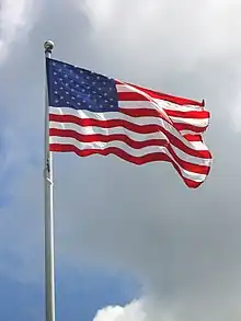 Le drapeau des États-Unis, surnommé Stars and Stripes (littéralement « étoiles et bandes »), The Star-Spangled Banner (généralement traduit par « bannière étoilée », et qui est également le titre de l'hymne national des États-Unis) ou encore Old Glory, est le drapeau national et le pavillon national des États-Unis. Il se compose de treize bandes horizontales rouges et blanches d’égale largeur disposées alternativement (7 rouges et 6 blanches), et d’un canton supérieur (côté mât) de couleur bleue parsemé de cinquante petites étoiles blanches à cinq pointes arrangées selon neuf rangées horizontales.