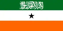 Le drapeau utilise les couleurs panarabes : vert, noir, blanc et rouge. La bande verte comporte la chahada en lettres blanches comme sur le drapeau de l'Arabie saoudite ou celui de l'Afghanistan. La bande blanche contient une étoile noire à cinq branches, représentant les cinq régions des somalis.