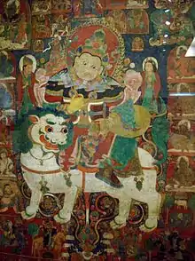 Le lion des neiges est figuré sur des thangkas aussi anciennes que celle représentant Vaiśravana datée de la seconde moitié du XIVe siècle, se trouvant au musée Guimet[84].