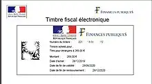 - « Achat de timbre fiscaux électroniques : question fréquentes », sur timbres.impots.gouv.fr (consulté le ).