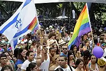 La première marche des fiertés en Israël a eu lieu en 1993 à Tel Aviv-Jaffa[23]. La première grande marche des fiertés de cette ville, appelée alors Love Parade de Tel-Aviv s'est tenue en 1997. Depuis, la Tel-Aviv Pride a lieu tous les ans dans cette ville, réunissant notamment 70 000 personnes en 2013[24], 100 000 personnes lors de l'édition 2014[24] et un record de 250 000 personnes en 2019[25].