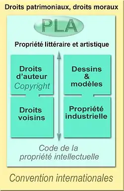 - la propriété littéraire et artistique, qui s'applique aux œuvres de l'esprit, est composée du droit d'auteur et des droits voisins ;