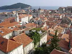 Dubrovnik, qui déroule ses remparts sur la côte dalmate, au bord de la mer Adriatique, est un lieu de villégiature recherché depuis que la Croatie a rejoint l'Union européenne le 1er juillet 2013, car le tourisme y représente près d'un quart du produit intérieur brut. Une étude publiée en 2020 l'a placé en tête des villes européennes exposées à la pression touristique en 2019[13], avec 36 visiteurs pour un résident local, devant Venise, Bruges et Rhodes, toutes les trois ex æquo en deuxième position, avec environ 21 touristes par habitant[13]. Dans un mouvement d'efforts pour respecter la population locale de ces villes, porté par la demande de tourisme responsable, les valises à roulettes sont interdites depuis juin 2023 sur les pavés du centre-ville, afin de réduire les nuisances sonores[14],[15].