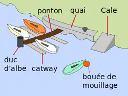 Dans le vocabulaire maritime, un duc-d’Albe (ou dolphin) consiste en des pilotis (poteaux de bois, tubes d’acier, blocs de ciment) ancrés dans le fond des bassins ou des chenaux, sur lequel un navire peut s’amarrer ou s’appuyer, en bief, aux abords d’une écluse, dans les darses d’un port de mer.