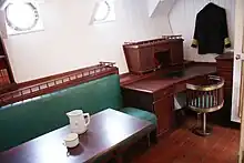 En effet, la double frise de proue n'a été que partiellement restaurée. Il en manque encore une partie et, surtout, la frise arrière est toujours absente[note 15]. Le bateau n'étant plus navigable, la voilure semble également de peu d'intérêt pour ses gestionnaires. Ainsi, le projet initié par l’association consistant à se servir des anciennes voiles du Mercator, pourtant récupérées, pour habiller quelques vergues du navire les jours de fêtes n'a toujours pas abouti[60]. Cela s'ajoute au fait que l'intérieur du bateau était peu garni jusqu'en 2010 malgré l'ébauche de quelques mises en scène (hamacs et posters géants, vareuse du commandant dans son bureau). Aujourd'hui, le portrait de la duchesse d'Oldenbourg trône à nouveau dans les appartements du commandant et une nouvelle présentation historique occupe l'entrepont[note 16]. Il y a désormais quelques objets usuels en situation (par exemple les minuscules coins pharmacie-infirmerie[61], la cuisine et la salle à manger du commandant[note 17]), mais il manque encore de véritables reconstitutions avec mannequins costumés et une scénarisation audio-visuelle. Cependant, cela nécessite des moyens et des mesures de sécurité et de surveillance adéquats.