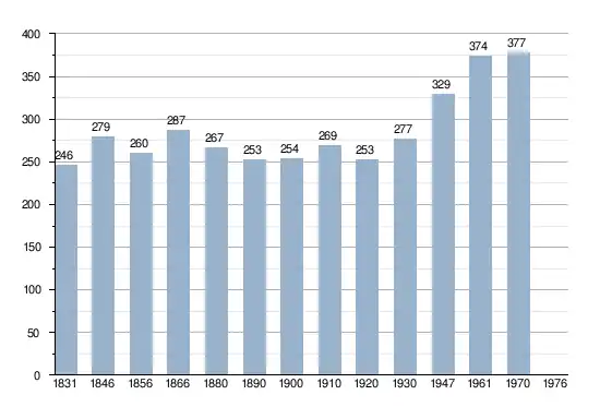 - Sources : INS, Rem. : 1831 jusqu'en 1970 = recensements