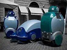 Le robot « DustCart » est un robot poubelle capable de collecter et transporter les ordures à la demande[4]. Il est capable de transporter 80 litres de déchet et possède différents conteneurs pour le tri sélectif. Sa locomotion est assurée par une base Gyropode Segway. Après des tests satisfaisants, il est actuellement en service dans la ville italienne de Peccioli qui a amélioré la connectivité de ses rues pour l'accueillir[5].