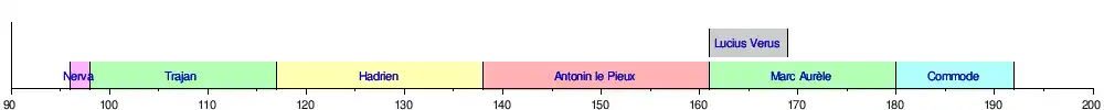 Les Antonins sont une dynastie[1] d'empereurs romains qui ont régné entre 96 et 192 apr. J.-C. Les cinq premiers empereurs du siècle d'or des Antonins entrent dans l'histoire sous le nom des « Cinq bons empereurs », expression inventée en 1503 par le penseur humaniste Machiavel et reprise dans l’ouvrage Histoire de la décadence et de la chute de l'Empire romain de l'historien Edward Gibbon en 1776 pour désigner Nerva, Trajan, Hadrien, Antonin le Pieux et Marc Aurèle dont le règne marque l'apogée de l'empire romain qui ne sera jamais plus riche et pacifié qu'à cette époque[2].