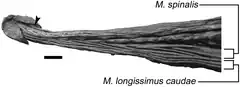 Les tendons se poursuivent sous les ostéodermes de la massue de bout de queue.