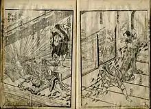 ![]() Image de la série e-hon Raigo Ajari Kaisoden (Les Rat(s) mystérieux de prêtre Raigo), illustrée par Katsushika Hokusai, vers 1808 |