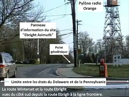 Le pylône radio situé juste au sud du point référencé a été construit en 1947 par la Western Union dans le cadre d’un ancien réseau de communication par faisceau hertzien (bande C) qui reliait New York avec Washington. Cette installation a été baptisée « Brandywine » en référence à la rivière Brandywine située à quelques kilomètres plus à l’ouest. Son indicatif radio est « KGB29 »[5]. Les ingénieurs de la Western Union ont choisi une structure de type « tour de guet préfabriquée haute résistance » qui permettait l’installation des émetteurs et des récepteurs micro-ondes à l’intérieur d’une cabine. Les antennes paraboliques installées derrière les ouvertures étaient orientées vers les stations relais adjacentes situées à Mount Laurel et à Elk Neck près d'Elkton (Maryland)[6].