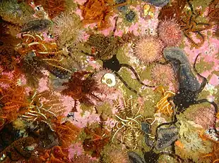 Les échinodermes (Echinodermata) sont un embranchement d'animaux marins benthiques présents à toutes les profondeurs océaniques. Les environ 6 500 espèces[2] sont toutes exclusivement marines : on ne connaît aucune espèce terrestre ni d'eau douce. Elles sont actuellement regroupées en cinq classes : les étoiles de mer, les ophiures, les oursins, les concombres de mer et les lys de mer.