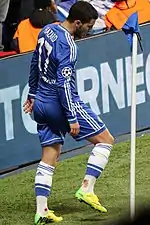 Le , Eden Hazard s'engage pour cinq saisons à Chelsea, alors qu'il semblait tout proche de rejoindre Manchester United, quelques jours plus tôt[34],[35]. Le transfert est évalué à 40 millions d'euros, le jeune belge touche plus de 500 000 € par mois et endosse le no 17, libre depuis le départ de José Bosingwa[36].