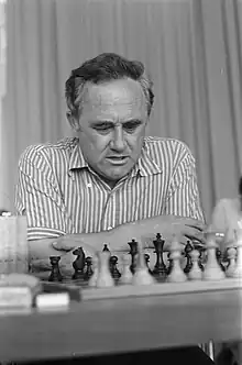 Efim Petrovitch Geller (en russe : Ефим Петрович Геллер), né le à Odessa (en RSS d'Ukraine, en URSS) et décédé le à Moscou (Russie), est un joueur d'échecs soviétique puis russe. Deux fois champion d'Union soviétique, en 1955 et en 1979, il fut l'un des vingt meilleurs joueurs d'échecs du monde pendant trente ans, de 1949 à 1979[1]. Il se qualifia six fois pour le cycle des candidats au championnat du monde, terminant troisième des tournois des candidats de 1956 et 1962, et demi-finaliste en 1965.