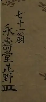 - Titre : Portrait mémorial de Konno des presses Eijudo à l'âge de 71 ans[47].