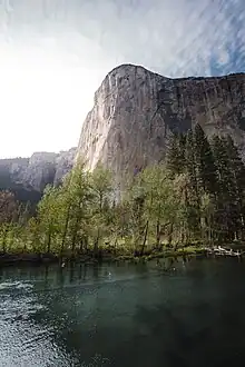 El Capitan est une formation rocheuse verticale de 900 m de haut située dans la vallée de Yosemite aux États-Unis, très connue dans le monde de l'escalade.