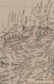 Situation des tribus au sud d'Oran vers 1845, d'après Carette et Warnier.