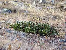 Sur le versant septentrional, entre 1 900 et 2 300 mètres d'altitude, se trouve une forêt de pins (Pinus kochiana et Pinus sylvestris) avec des bouleaux (Betula sp.) et des frênes des montagnes. Les couloirs à avalanches sont clairement visibles avec la seule présence des feuillus. L'argousier (Hippophae rhamnoides), arbuste au feuillage argenté, est présent dans la vallée du fleuve Baksan. Dans les prairies subalpines, les herbes et les fleurs peuvent atteindre une hauteur de 70 à 80 cm. Un des plus beaux arbustes à fleurs de la région, le rhododendron du Caucase (Rhododendron caucasicum), y pousse. Localement appelé la « rose des Alpes », ses fleurs rose pâle et crème entrent en floraison au début du printemps. Ses racines s'enfoncent profondément dans le sol en pente, ce qui lui permet de résister au vent et à la neige[18]. Entre 2 300 et 3 000 mètres d'altitude, l'étage subalpin laisse place à l'étage alpin et à ses pelouses alpines riches en fleurs. Au-delà, à la limite des glaciers et des névés, les perce-neige fleurissent et des lichens multicolores recouvrent les rochers dépourvus de neige[19]. Entre 3 000 et 3 500 m, à des altitudes où les plantes poussent encore, le Céraiste cotonneux (Cerastium tomentosum), les draves (Draba sp.) et saxifrages (Saxifraga vinnica) peuvent également être trouvés par endroits parmi les lichens.