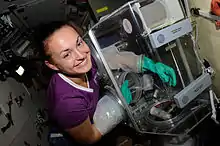 Le 25 septembre 2014 elle décolle à bord du vol Soyouz TMA-14M lancé une fusée Soyouz-FG depuis le Cosmodrome de Baïkonour en direction de la Station spatiale internationale, pour une mission de six mois, les Expédition 41 et 42, avec le cosmonaute russe Alexandre Samokoutiaïev et l'Américain Barry Wilmore.
