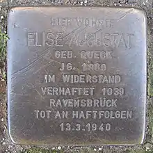- Benedikt Behrens, « Elise Augustat, geb. Queck, geb. 20.7.1889 in Waldkeim/Ostp..... », Landeszentrale für politische Bildung in Hamburg ("Stolpersteine in Hamburg") (consulté le )