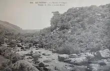 La roche de l'Aigle surplombe la vallée de l'Ellé à Sainte Barbe (carte postale du premier quart du XXe siècle).