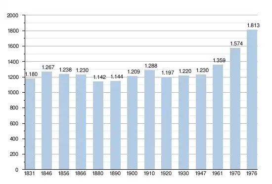 - Sources : INS, Rem. : 1831 jusqu'en 1970 = recensements, 1976 = nombre d'habitants au 31 décembre[2].