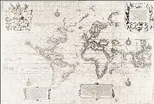 Dans le deuxième volume de la version fortement enrichie de son livre The Principal Navigations, Voiages, Traffiques and Discoueries of the English Nation (1599)[59], Hakluyt publia ce qui est désormais connu sous le nom de carte de Wright–Molyneux[60]. Créée par Edward Wright à partir du globe terrestre de Molyneux, cette carte fut la première à utiliser les améliorations apportées par Wright à la projection de Mercator[61].