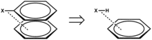 La preuve expérimentale la plus claire contre les effets des substituants électrostatiques a été rapportée par Rashkin et Waters[11]. Ils ont utilisé des bromures de N-benzyl-2-(2-fluorophényl)-pyridinium substitués en méta et para, qui s'empilent dans une conformation déplacée parallèle, comme système modèle pour les interactions d'empilement pi. Dans leur système, un lieur méthylène interdit les interactions favorables en forme de T. Comme dans les modèles précédents, la force relative des interactions d'empilement pi a été mesurée par RMN comme le taux de rotation autour de la liaison biaryle, car les interactions d'empilement pi sont perturbées dans l'état de transition. Les anneaux para-substitués avaient de petites barrières de rotation qui augmentaient avec les groupes de plus en plus attracteurs d'électrons, conformément aux résultats antérieurs. Cependant, les cycles méta-substitués avaient des barrières de rotation beaucoup plus grandes malgré des densités d'électrons presque identiques dans le cycle aromatique. Les auteurs expliquent cette divergence comme une interaction directe du bord des atomes d'hydrogène d'un cycle avec les substituants électronégatifs sur l'autre cycle. Cette affirmation est étayée par les données de déplacement chimique du proton en question.