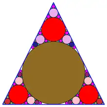 - Cercles d'Apollonius (fractale) (empilement complet de cercles dans un cercle)