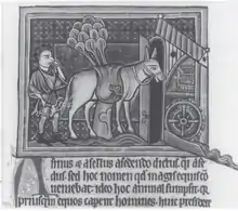 Moulin à eau, miniature anglaise, v. 1200-1250.