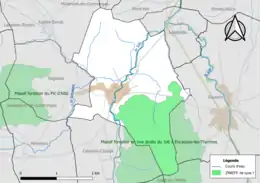 L'occupation des sols de la commune, telle qu'elle ressort de la base de données européenne d’occupation biophysique des sols Corine Land Cover (CLC), est marquée par l'importance des forêts et milieux semi-naturels (52,3 % en 2018), une proportion identique à celle de 1990 (52,3 %). La répartition détaillée en 2018 est la suivante : forêts (52,3 %), zones agricoles hétérogènes (20,2 %), prairies (17,6 %), zones urbanisées (10 %)[24]. L'évolution de l’occupation des sols de la commune et de ses infrastructures peut être observée sur les différentes représentations cartographiques du territoire : la carte de Cassini (XVIIIe siècle), la carte d'état-major (1820-1866) et les cartes ou photos aériennes de l'IGN pour la période actuelle (1950 à aujourd'hui)[Carte 2].